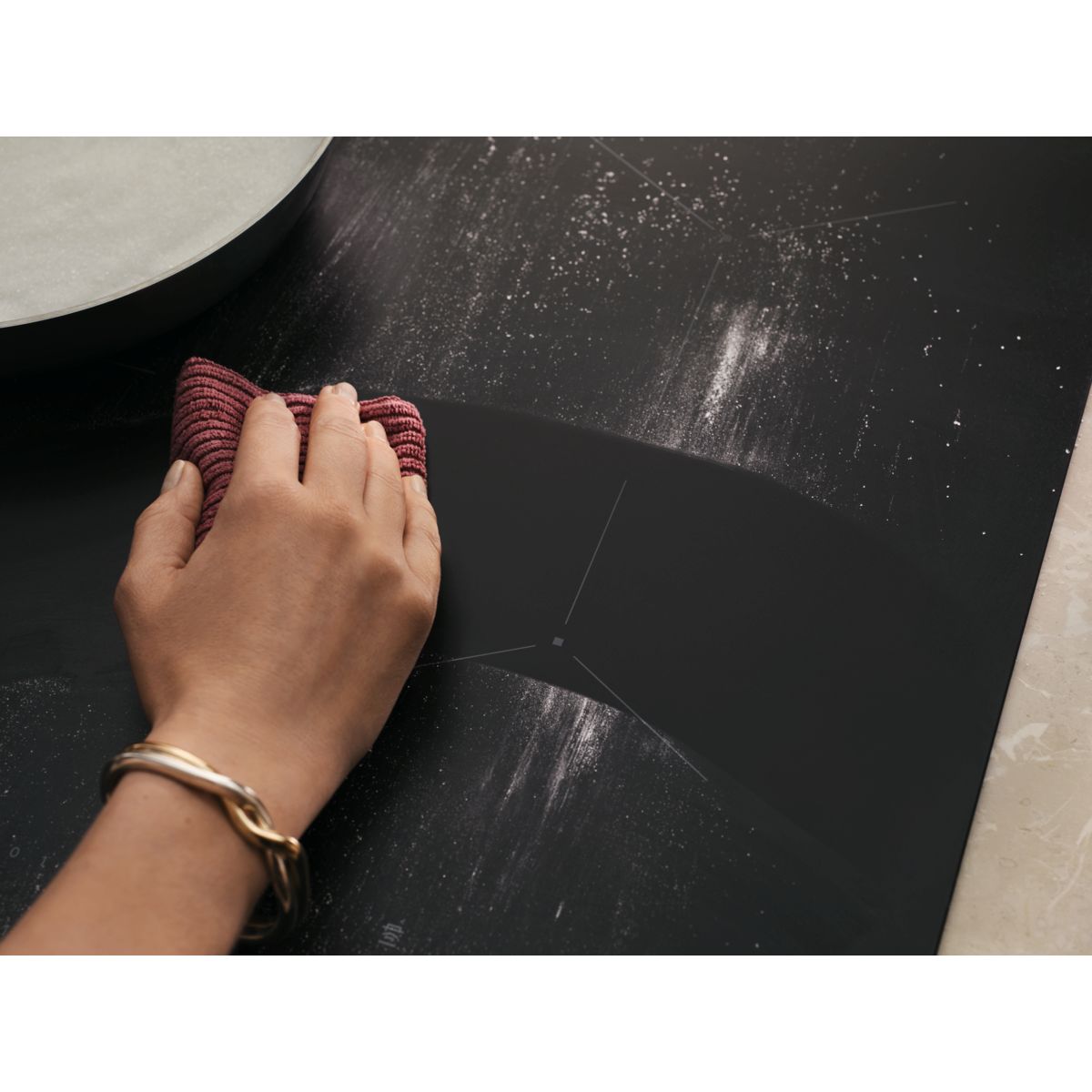 * Gebaseerd op slijtagetests uitgevoerd door een extern Zwitsers laboratorium volgens de internationale norm IEC 60068-2-70. De zichtbaarheid van krassen wordt intern beoordeeld in vergelijking met onze standaard keramische kookplaten zonder speciale behandeling of coating.
