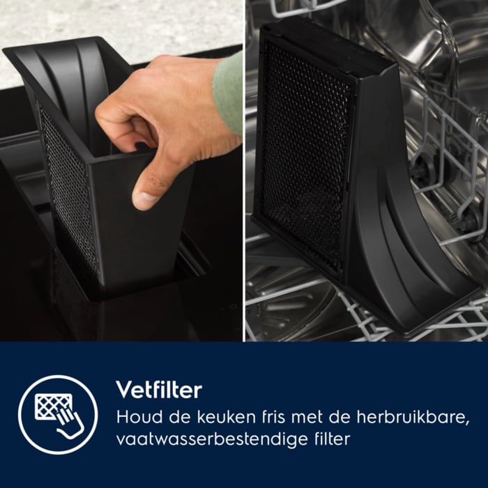 De vetfilter is eenvoudig te verwijderen en te reinigen.