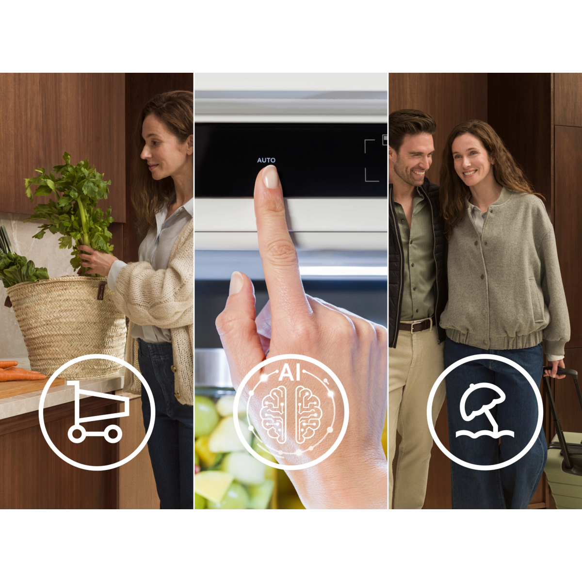 *Energiebesparing gemeten op 178 cm Multichill/Twintech NoFrost koel-vrieskast en 122,5 cm NoFrost diepvriezer bij activatie van de Auto Vakantie-modus, vergeleken met fabrieksinstellingen met AI CoolAssist® uitgeschakeld, bij buitentemp. 25°C. Werkelijke energiebesparing kan variëren afhankelijk van gebruik en omgevingstemp.